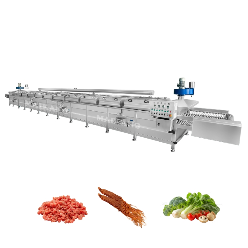 Туннельная пропарочная машина предназначена для непрерывной термической обработки фруктов и овощей, китайских травяных лекарств, морепродуктов, пшеничных продуктов и т.д. Она использует конвейерную сетчатую ленту для транспортировки материалов через паровую камеру, обеспечивая равномерный нагрев и эффективную обработку. Помимо стандартных применений в пищевой промышленности, машина особенно подходит для переработки кормов для домашних животных. Она может использоваться для варки и формования мясных полосок, а также для пропаривания и отверждения измельченных и эмульгированных мясных продуктов. Благодаря точному контролю температуры и времени обработки, она помогает достичь правильной текстуры, стабильности формы и соответствия стандартам безопасности пищевых продуктов.